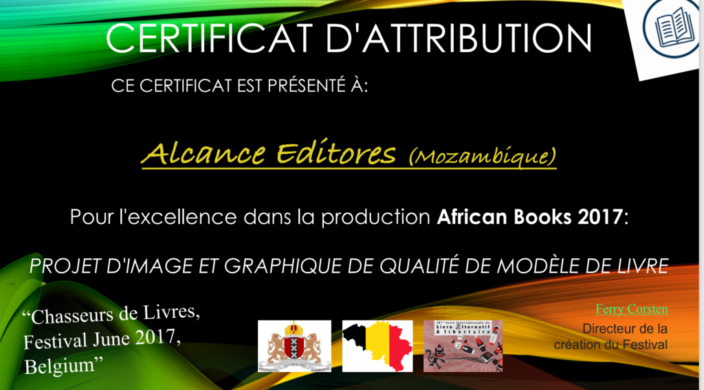 Certificado de Excelência de Produção African Books 2017: PROJET D’IMAGE ET GRAPHIQUE DE QUALITÉ DE MODÈLE DE LIVRE.Esta premiação vem da qualidade e do nosso profissionalismo e dedicação de todos os colaboradores.
